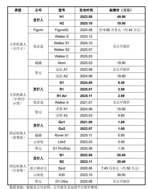 或许,从2025年开始的机器人行业价格战,“打”得还是太早了。因为宇树的产品能卖出去,从来都不是靠便宜。在问询回复函里,宇树列出了自己产品与友商的价格对比。除了中小型机器人R1系列外,宇树的产品定价没有明显便宜。说到底,现阶段机器人销售拼的还是综合产品能力。