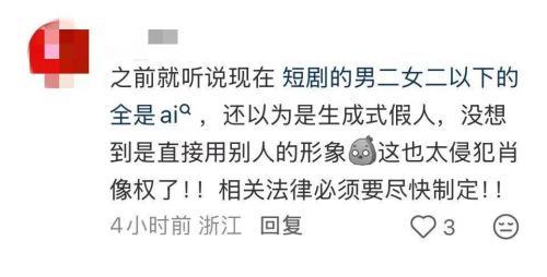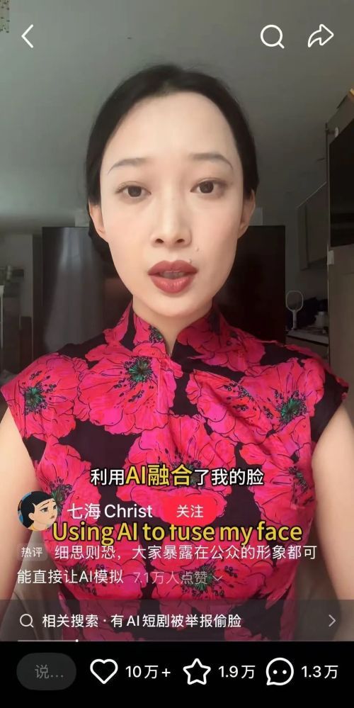 这名网友“七海Christ”是一名商业模特,她在网络上发布了严正声明。她说,AI短剧盗用她的形象,“正在持续污染我的职业形象”,“对我的职业生涯造成不可逆的负面影响”,同时,她还郑重表态,AI短剧这种“盗脸”行为是对她“人格侮辱与诋毁”,“严重侵犯了我的名誉权”。目前这名网友已经做了证据保全,并将向这部短剧的制作方、发行方和短剧平台追究法律责任。她还在声明中呼吁加强监管,“不要再让普通人的脸和形象,成为侵权者敛财的工具”!