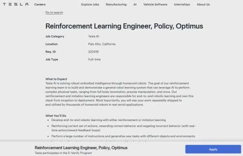此次全链条的大规模专项招聘,覆盖量产所需的制造、供应链、AI算法等核心环节,也意味着Optimus研发项目正式从原型技术攻坚阶段,全面转向量产落地的筹备阶段。招聘岗位的重心聚焦于大规模制造、数据链路、产线自动化等方向,与马斯克此前提出的 “长期实现百万台级量产” 的目标高度匹配,特斯拉正为后续量产落地搭建完善的全链条能力体系。