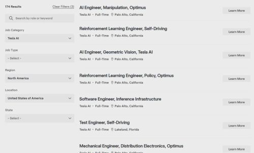 伴随Optimus Gen 3量产规划的落地,特斯拉开启了该项目史上最大规模的人才招募,在美国加州帕洛阿尔托、弗里蒙特、德州奥斯汀、内华达四大基地,开放超100个专项岗位,覆盖AI算法、机械硬件、软件系统、制造工程、数据与供应链全链条,其中AI与生产工程类岗位占比超50%。