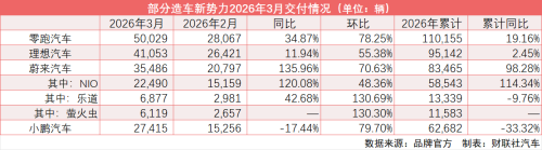 4月1日,造车新势力陆续发布3月交付成绩。其中,零跑汽车重返月销5万辆区间,理想汽车、蔚来汽车和小鹏汽车均较上月实现不同程度增长。
