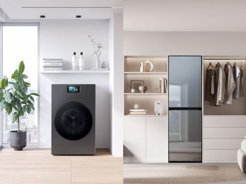 左为三星AI神 黑钻热泵洗烘旗舰,右为三星AI神 黑钻衣物护理机