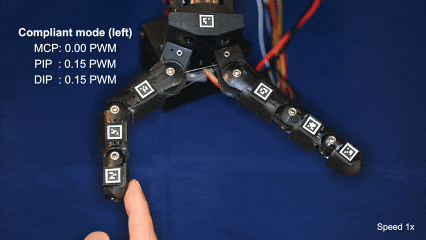 低占空比(比如15%)下,手指处于柔性模式,可以轻松贴合不规则形状的软泡沫,而且可以被外力反向驱动。用户可以直接用手把抓着的塑料瓶重新摆个位置,关节会被动地适应,完全不需要主动力控制。这在人机协作或处理易碎物品时极为有用。