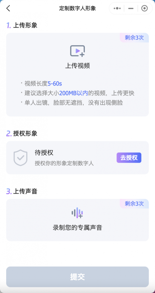 不想出镜、害怕镜头?数字分身功能帮你完美解决!仅需上传一段5-60秒的已拍摄好的视频,或一张清晰照片,再录制一段声音音频,就能定制出一个无论是形象还是音色,都与本人高度相似的专属数字分身!