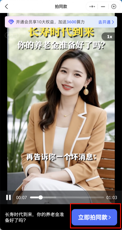 保险人无需写脚本、也可以不用出镜拍、不用手动剪辑,只需挑选心仪的模板,点击右下角“立即拍同款”,再选择你要用的AI数字分身和声音,就可快速生成一条,贴合你专属形象和声音的完整视频作品,下载后,可直接发布到视频号、小红书、抖音等自媒体平台,真正实现“一键创作,秒出爆款”。