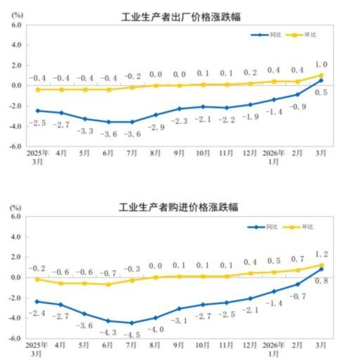PPI涨势能否持续?冯琳指出,进入4月,美伊冲突仍在持续,中东局势前景面临较大不确定性,国际油价(现货)在130美元/桶左右高位波动,高油价对国内PPI的推升作用将进一步显现。同时考虑到反内卷继续深入,以及“两会”后政策加速落地对能源和工业品需求端有所支撑,预计4月PPI环比将延续快速上涨。加之同比基数进一步下沉,预计4月PPI同比涨幅将加速至1.9%左右。
