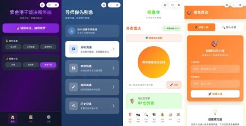 在“校园生活改造计划”挑战环节,一批围绕校园日常场景、充满创意的闪应用迅速被“手搓”出来。例如,生物系学生做的「导师你先别急」,用AI模拟不同表达方式,帮学生优化和导师沟通的措辞;融合塔罗牌和网络热梗的「紫金港干饭神器」,专门解决“今天吃什么”的选择难题;还有为社恐设计的「赛博嘴替」,以及集外卖防丢与跑腿互助于一体的「校急令」等。