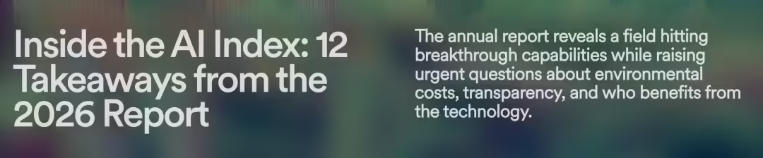 今天,斯坦福 HAI 重磅发布「2026 年 AI 指数报告」!这份长达 423 页的年度报告,全面揭示了全球 AI 产业的最新权力版图。
