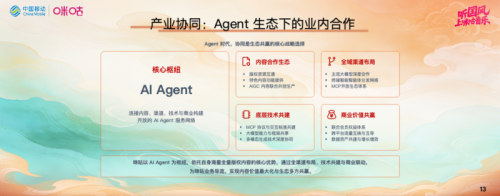 面对AI产业生态化发展新趋势,当前AI正从大模型迭代走向AI Agent生态运营,咪咕以端内深耕体验、端外拓展生态双轮模式推进实践,依托九天大模型在音乐、视频等场景落地多元智能应用。未来将以AI Agent为枢纽,强化内容、技术与渠道协同,共建开放生态,推动内容产业数智化升级。